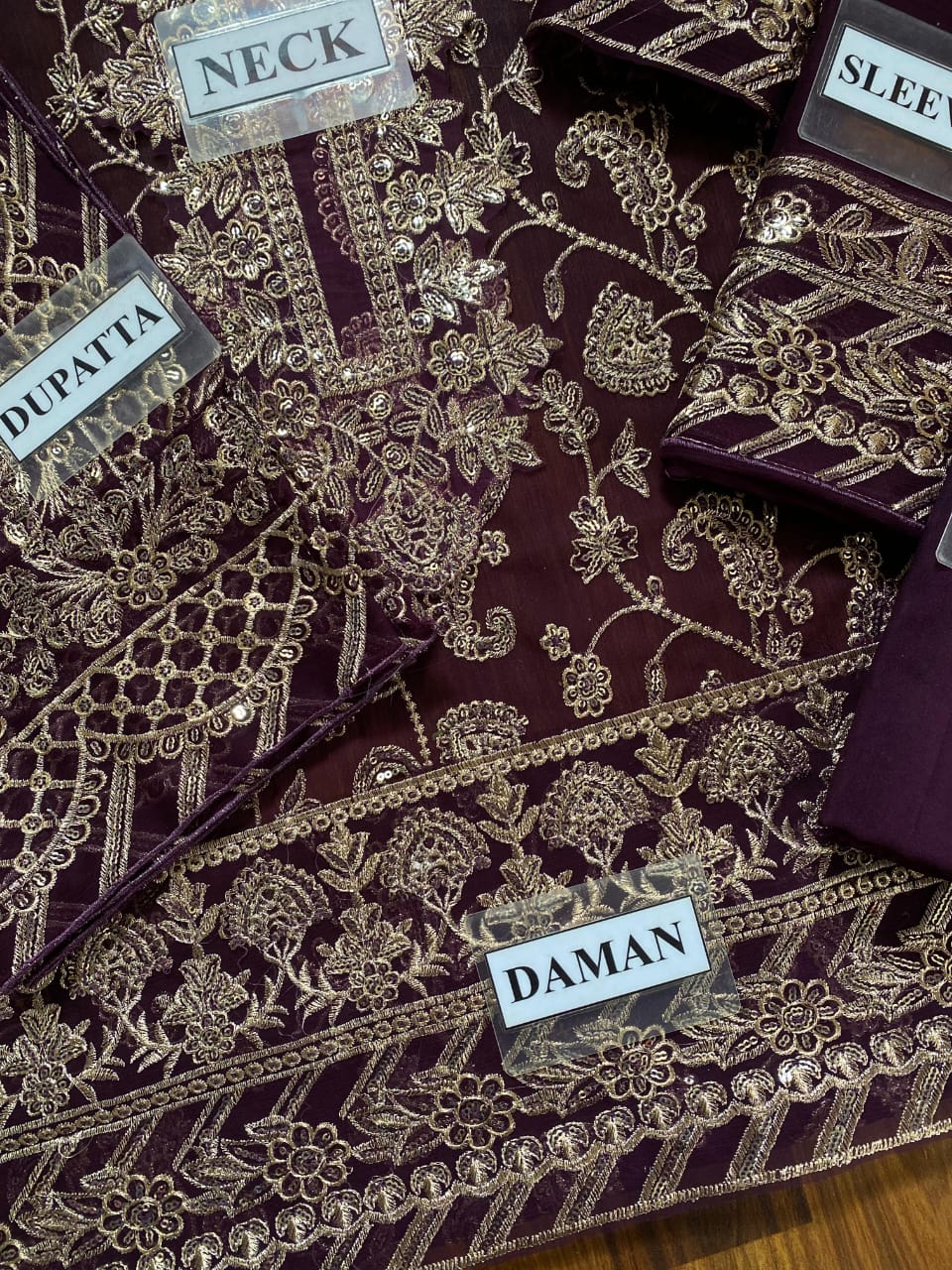 Again available on demand! This Asim Jofa Unstitched Replica features premium chiffon fabric paired with a soft malai trouser. Designed with elegant sequence work, this outfit is perfect for weddings, parties, and festive events. A stylish and high-quality dress for women who love luxury fashion at an affordable price.